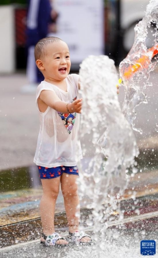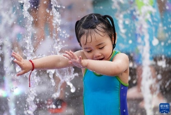 當(dāng)日7時,北京市氣象臺升級發(fā)布高溫紅色預(yù)警信號,預(yù)計6月23日至25日北京市高溫天氣仍將持續(xù)。不少市民來到泳池、水上樂園和戶外噴泉,戲水覓清涼。