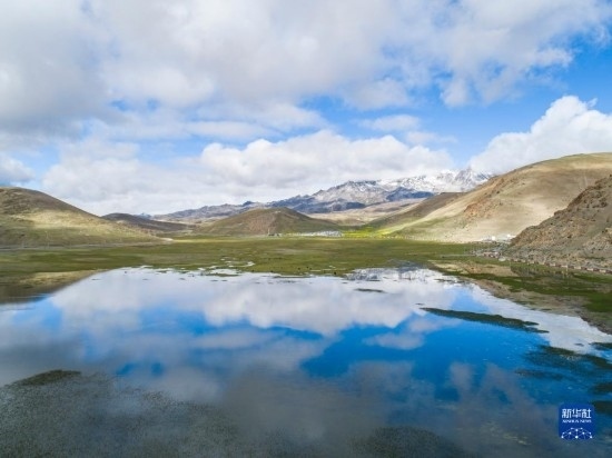 這是錯(cuò)那市區(qū)附近的濕地(6月28日攝,無(wú)人機(jī)照片)。