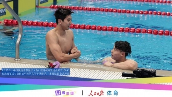亞運(yùn)賽場不僅有激烈的競爭,更有真誠的交流。杭州亞運(yùn)會賽場內(nèi)外,友誼之花處處綻放。覃海洋、閆子貝握手慶祝包攬男子100米蛙泳冠亞軍,新加坡隊(duì)選手康占斌向柯潔贈送紀(jì)念徽章以示友好,泰國選手和陳燁碰拳表示祝賀……亞運(yùn)會既是運(yùn)動員們切磋技術(shù)、較量能力的舞臺,也搭建起了溝通的橋梁,充分印證了杭州亞運(yùn)會“心心相融,愛達(dá)未來”的口號。