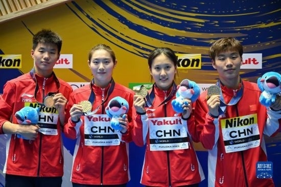 當日,在日本福岡舉行的2023年世界游泳錦標賽跳水混合團體決賽中,中國隊以489.65分奪冠。
