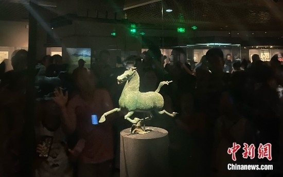 甘肅省博物館“鎮(zhèn)館之寶”銅奔馬。中新網(wǎng)記者王詩(shī)堯 攝