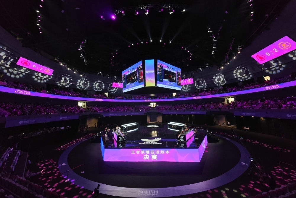這是在杭州電競(jìng)中心拍攝的“韻味杭州”電子競(jìng)技全國邀請(qǐng)賽王者榮耀亞運(yùn)版決賽現(xiàn)場(chǎng)(2023年5月21日攝)。新華社記者 黃宗治 攝