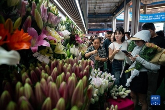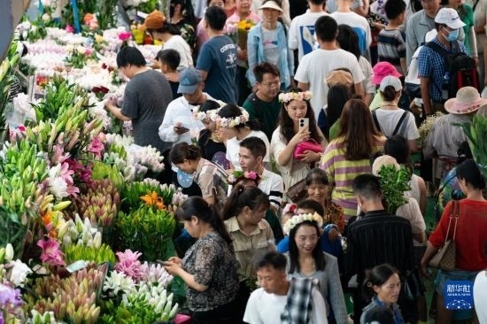 中秋國慶長假期間,不少市民游客前往云南省昆明市的斗南花卉市場選購鮮花。