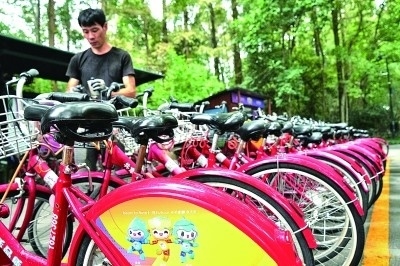 杭州共享單車上的亞運會吉祥物圖案。本報記者陳茵攝 光明圖片
