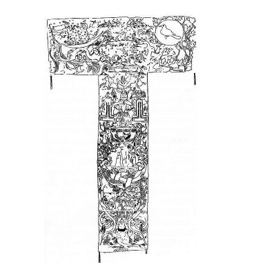 解讀出漢墓帛畫中殘月所蘊含的時間密碼,再看整幅T形帛畫。我們看到馬王堆漢墓帛畫形制上最重要的特征,就是非常特殊的T字形狀。中央由三張絹布整幅拼成,中軸描繪了天、承載墓主人魂魄的魂車和地下世界三部分。這樣的三段模式在漢畫像石中并不少見。一如曾部川寬指出的那樣,真正造成這個T字形特殊形狀的,是在中軸的左右增加了描繪太陽和描繪月亮的部分。我想之所以特地增加出日月這兩部分,一定是因為有特別的需要。那么,這需要是什么呢?當(dāng)我們解讀清楚在帛畫上段左側(cè)描繪的月世界的殘月所蘊含的特殊時間密碼,再去看右側(cè)對稱處特地畫出九個太陽組成的畫面,我們自然會想到《山海經(jīng)》中扶桑木與十日的神話故事,與蟾蜍、玉兔、殘月等圖像展示的主題一樣,這應(yīng)該同樣是一個與時間循環(huán)密切相關(guān)的故事主題。日與月在這里并不單純是代表性的天文標志物。他們展示的都是時間的循環(huán),和在時間循環(huán)中死而復(fù)生的主題。本文就此止筆于月相的分析。有關(guān)太陽的循環(huán),以后再展開討論。