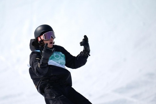 2022年2月15日,中國選手蘇翊鳴在比賽中。當日,北京2022年冬奧會單板滑雪男子大跳臺決賽在北京首鋼滑雪大跳臺舉行。中國選手蘇翊鳴奪得金牌。新華社記者 李一博 攝