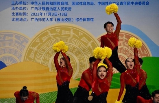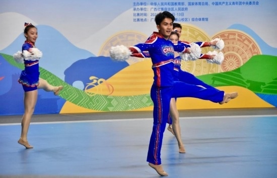 學(xué)青會(huì)校園組啦啦操比賽場景。新華社記者 鄭昕 攝