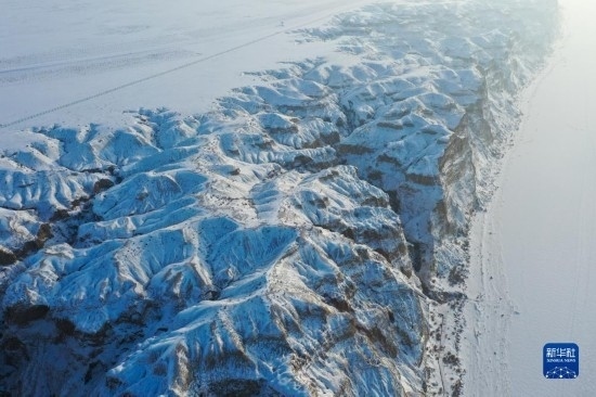 這是在新疆阿勒泰地區(qū)福??h拍攝的海上魔鬼城冬景(12月21日攝,無人機照片)。