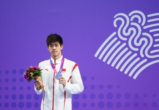 2023年9月27日,亞軍中國(guó)選手潘展樂(lè)在杭州亞運(yùn)會(huì)游泳項(xiàng)目男子200米自由泳的頒獎(jiǎng)儀式上。新華社記者 黃宗治 攝