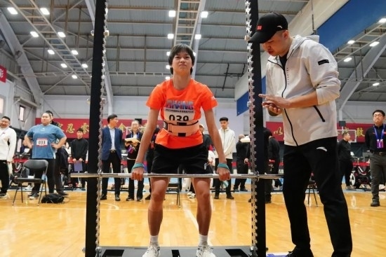 2023年12月29日,2023年國(guó)家隊(duì)冬訓(xùn)體能大比武在國(guó)家體育總局訓(xùn)練局舉行,來(lái)自射擊、舉重、田徑、游泳、跳水、花樣游泳、體操、蹦床、乒乓球、羽毛球等10支國(guó)家隊(duì)的150名運(yùn)動(dòng)員參加活動(dòng)。圖為國(guó)家舉重隊(duì)運(yùn)動(dòng)員李發(fā)彬在測(cè)試中。