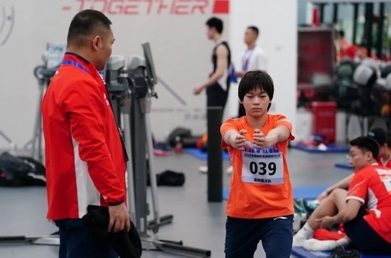 2023年12月29日,2023年國(guó)家隊(duì)冬訓(xùn)體能大比武在國(guó)家體育總局訓(xùn)練局舉行,來(lái)自射擊、舉重、田徑、游泳、跳水、花樣游泳、體操、蹦床、乒乓球、羽毛球等10支國(guó)家隊(duì)的150名運(yùn)動(dòng)員參加活動(dòng)。圖為國(guó)家跳水隊(duì)運(yùn)動(dòng)員全紅嬋在測(cè)試前熱身。