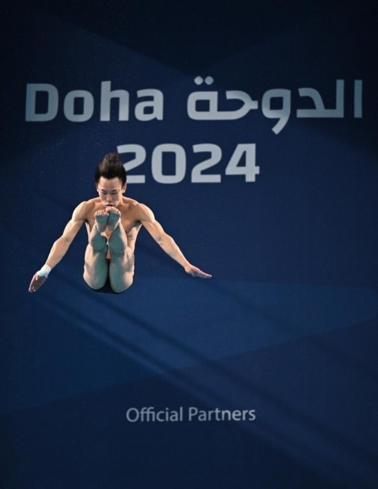 2月10日,中國選手楊昊在男子10米臺決賽中。新華社記者 薛宇舸 攝