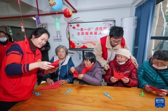 臨近元宵佳節(jié),浙江省湖州市吳興區(qū)飛英街道組織各社區(qū)社工和黨員志愿者開(kāi)展形式多樣的“一老一小”慶元宵活動(dòng),組織老人和未成年人猜燈謎、剪窗花、做燈籠,還為行動(dòng)不便的老人送去湯圓和節(jié)日的問(wèn)候。