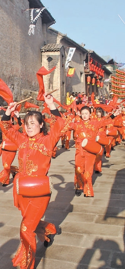上莊村村民在表演山西省非物質(zhì)文化遺產(chǎn)“中莊秧歌”。張家慶攝(人民視覺)