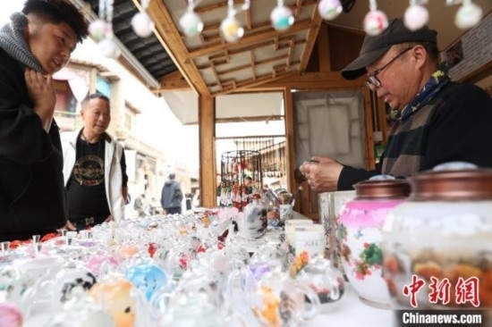 市民觀(guān)看艾福多創(chuàng)作內(nèi)畫(huà)鼻煙壺。中新網(wǎng)記者 于晶 攝