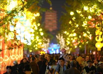 今年中秋假期,“京彩燈會(huì)”吸引了超過(guò)12萬(wàn)名游客。國(guó)慶假期前4天,游客量達(dá)7萬(wàn)余人。除了大飽眼福,燈會(huì)還設(shè)立150余家特色商鋪,覆蓋老字號(hào)、非遺、文創(chuàng)、餐飲美食等,豐富游客體驗(yàn)。多家知名餐飲企業(yè)在燈會(huì)擺攤設(shè)點(diǎn)為游客服務(wù),賞燈之余還能享受大廚現(xiàn)做的星級(jí)美食。