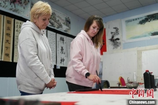 圖為外國(guó)友人進(jìn)行書法創(chuàng)作。韓慧峰 攝