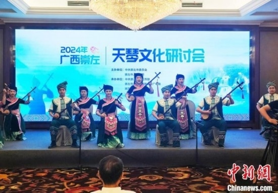 10月23日,2024年廣西崇左天琴文化研討會在崇左市舉行。圖為天琴彈唱表演。中新網(wǎng)記者 黃艷梅 攝