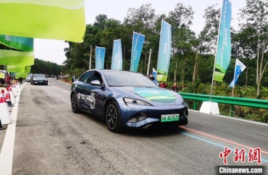 12月29日,環(huán)熱帶雨林國家公園旅游公路項目在海南瓊中黎族苗族自治縣黎母山鎮(zhèn)舉行通車儀式。第一批新能源車隊集結(jié)出發(fā)。中新網(wǎng)記者 張茜翼 攝