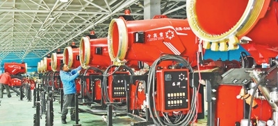 卡賓滑雪裝備制造有限公司員工在裝配造雪機(jī)。