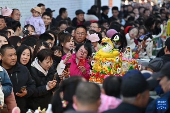 當(dāng)日是農(nóng)歷二月十九,每年農(nóng)歷這一天,呂梁山區(qū)的山西省嵐縣嵐城鎮(zhèn)的鄉(xiāng)親們都會將精心制作的面塑擺上街頭進行展示,形成一條百米長的“面塑長河”。這些面塑作品造型各異、精巧絕倫,寄托了人們對美好生活的期盼。