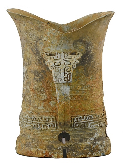 湖北黃陂盤(pán)龍城遺址出土的銅帶鋬觚形器。