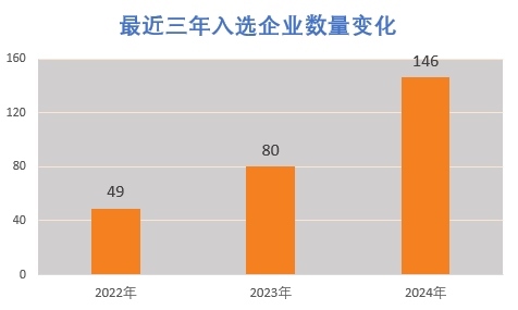 據(jù)了解,入選企業(yè)評(píng)選標(biāo)準(zhǔn)非常嚴(yán)格,需同時(shí)滿(mǎn)足專(zhuān)業(yè)化、精細(xì)化、特色化、創(chuàng)新能力、產(chǎn)業(yè)鏈配套等多個(gè)指標(biāo)。盡管如此,2024年名單中的企業(yè)與2022年49家和2023年80家相比,大幅增加到146家。