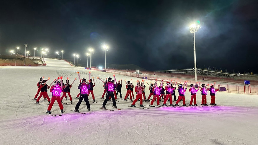 岱海國(guó)際滑雪場(chǎng)地處臥佛山北坡,位于北緯40°—42°之間,這里最高海拔2100米,雪道落差500米,雪道面積400000余平方米,雪道總長(zhǎng)度14000余米,擁有國(guó)際標(biāo)準(zhǔn)越野賽道和單板標(biāo)準(zhǔn)U型槽以及“貓?zhí)被┑溃∕ogul Slope)和“波浪道”等比賽場(chǎng)地。(圖源/烏蘭察布文聯(lián))