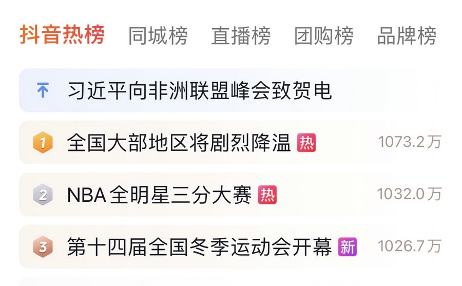 當(dāng)晚,無(wú)與倫比、震撼人心的開(kāi)幕式登上抖音熱榜第一名,截至18日中午,依然是熱榜前三名。