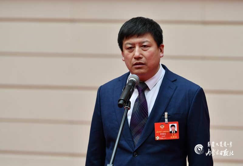 自治區(qū)政協(xié)委員李國(guó)良回答記者提問。內(nèi)蒙古日?qǐng)?bào)記者 馬建荃攝