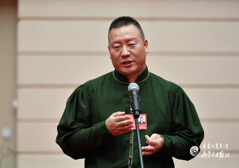 自治區(qū)政協(xié)委員郭萬富回答記者提問。內(nèi)蒙古日?qǐng)?bào)記者 馬建荃攝