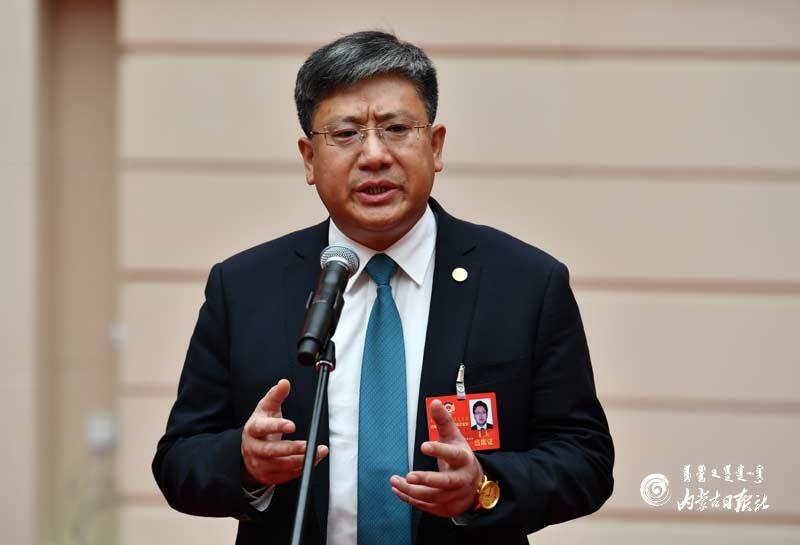 自治區(qū)政協(xié)委員金海回答記者提問。內(nèi)蒙古日?qǐng)?bào)記者 馬建荃攝