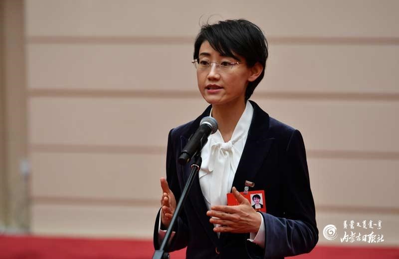 自治區(qū)政協(xié)委員張競(jìng)回答記者提問。內(nèi)蒙古日?qǐng)?bào)記者 馬建荃攝
