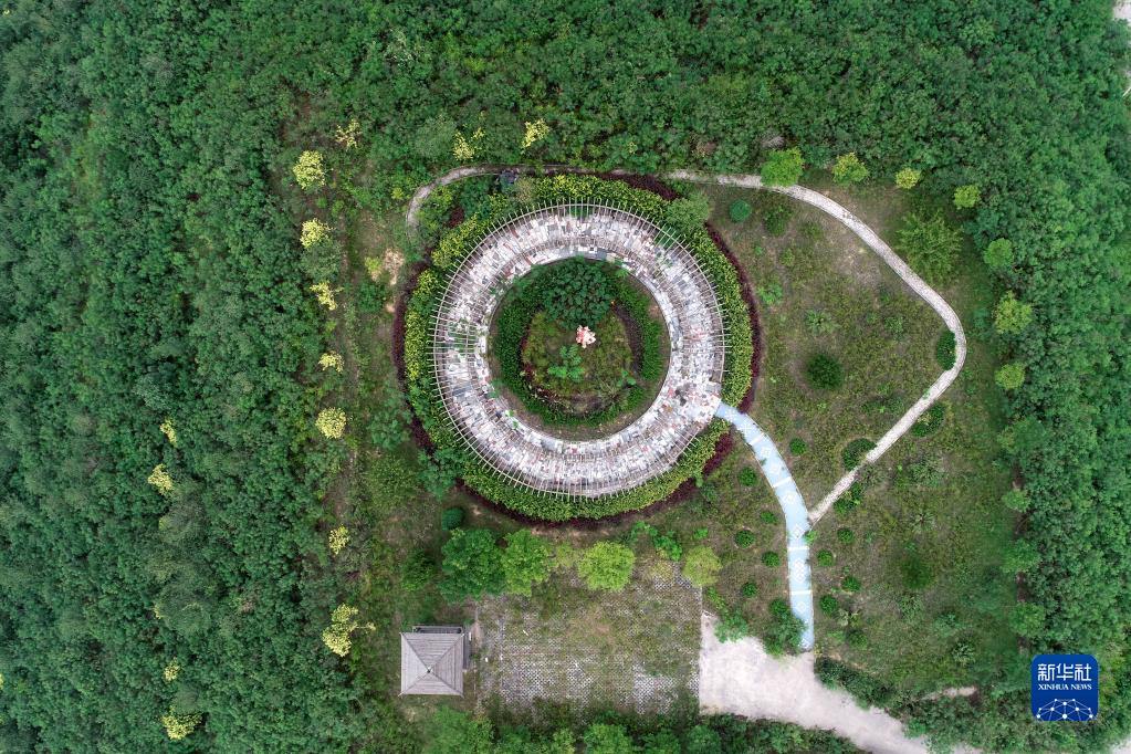 在山西省靈石縣兩渡鎮(zhèn),山西焦煤汾西礦業(yè)兩渡煤業(yè)公司在矸石山上建起來(lái)的公園(2018年9月4日攝,無(wú)人機(jī)照片)。新華社記者 詹彥 攝