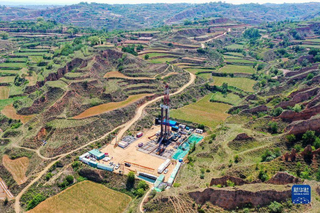 這是華新燃?xì)馍轿魉{(lán)焰煤層氣集團(tuán)有限責(zé)任公司位于山西省長(zhǎng)治市武鄉(xiāng)縣的一處鉆井現(xiàn)場(chǎng)(2021年6月22日攝,無(wú)人機(jī)照片)。新華社記者 曹陽(yáng) 攝