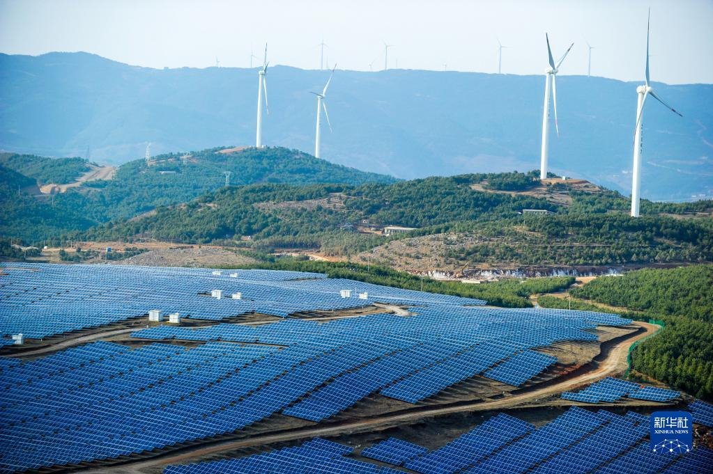 這是貴州省威寧縣平箐光伏電站和大海子風(fēng)電場(chǎng)(2018年3月13日攝)。新華社記者 楊文斌 攝