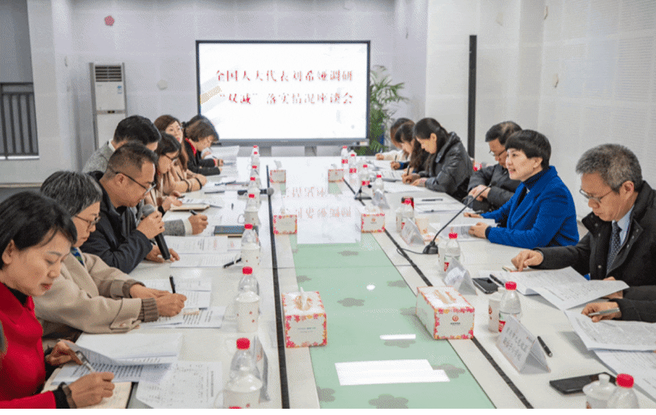 ↑2月24日,在謝家灣學校,劉希婭與部分家長代表座談交流,收集大家對“雙減”政策在落地執(zhí)行中的意見和建議。