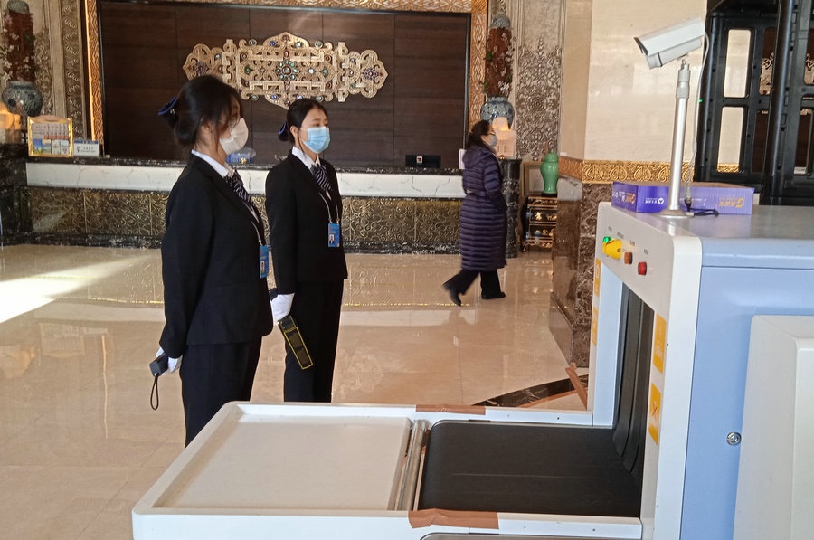 2022年內(nèi)蒙古自治區(qū)“兩會(huì)”召開在即,會(huì)議各項(xiàng)準(zhǔn)備工作基本就緒。圖為人大代表駐地,安檢人員已做好準(zhǔn)備。 北疆新聞網(wǎng)、北疆新聞APP、北疆云記者 王豐攝影報(bào)道