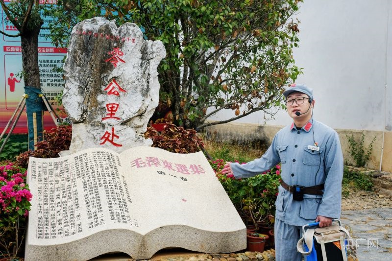 現(xiàn)在,中復村是聞名的紅色研學圣地、“紅軍長征第一村”。今年32歲的義務紅色講解員、紅軍烈士后代鐘振華頭戴耳麥、手提音響,正在為游人講解這里曾經(jīng)發(fā)生的悲壯感人故事。