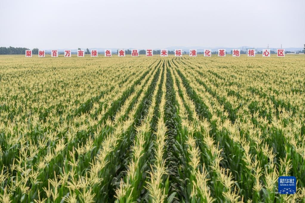 2021年7月29日拍攝的吉林省梨樹(shù)縣國(guó)家百萬(wàn)畝綠色食品原料(玉米)標(biāo)準(zhǔn)化生產(chǎn)基地核心示范區(qū)。新華社記者 張楠 攝