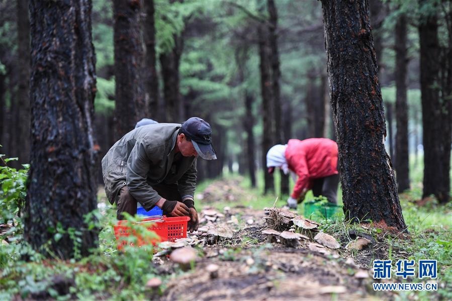 近日,內(nèi)蒙古克什克騰旗樺木溝林場的大球蓋菇長勢喜人,工人們在密林間忙著采摘。這是當?shù)亓謭雠c青島農(nóng)業(yè)大學(xué)于2018年起開始合作的食用菌林下種植試驗項目,目前這里的大球蓋菇畝產(chǎn)能達4000斤以上,還吸引了許多游客來體驗林中蘑菇采摘。今年,該試驗項目已經(jīng)小規(guī)模推廣到林場周邊鄉(xiāng)鎮(zhèn),林下種菌使老林區(qū)有了新活力,帶動了林區(qū)居民增收。新華社記者 劉磊 攝