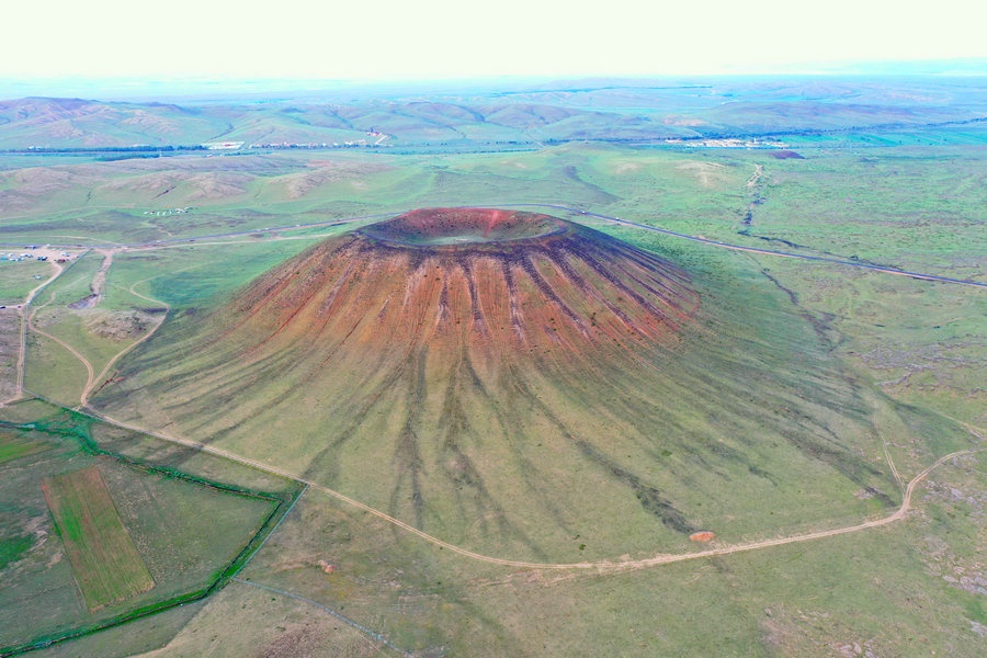 烏蘭哈達火山群,位于內(nèi)蒙古自治區(qū)烏蘭察布市察右后旗,在長約12公里的斷裂帶上,分布著30多座火山。